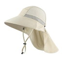 [Connectyle]幼児キッズUPF50+広いつばサファリハット速乾ネックカバー付き日よけ帽子調節可能アウトドア水遊びベージュグリーンM