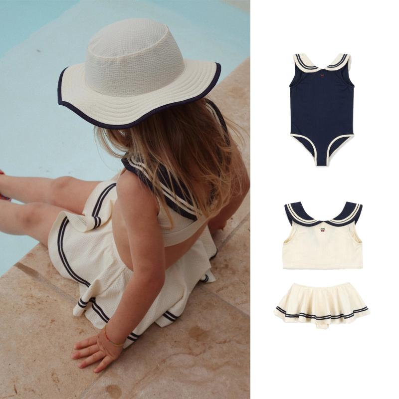 水着 女の子 ベビー 女児 2歳 3歳 4歳 5歳 6歳 幼児 ワンピース セパレート 北欧風 マリンルック セーラー 速乾 ポリエステル 春夏 青 白 プール 海 水遊び 三角パンツ