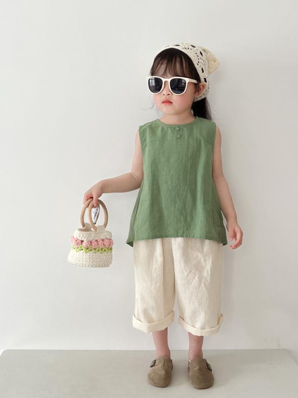 子供服 ベスト ベビー 男の子 女の子 韓国 清涼感 無地 ゆったり 綿麻 トップス ノースリーブ