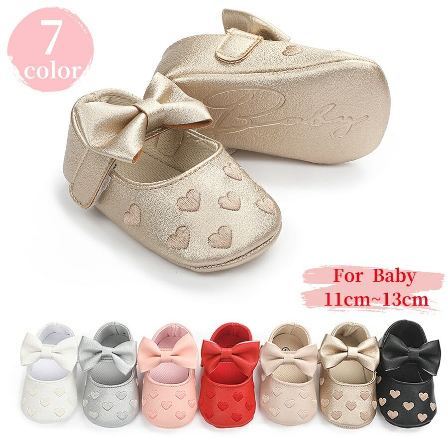 ハイハイを卒業して、歩き始める時期にピッタリ♪ ハート柄&大きなリボンが可愛いファーストシューズです。 面ファスナーで脱ぎ履きも簡単☆ 出産祝いなどのギフトとしてもオススメです◎ 【カラーについて】 生産ロットにより柄の出方や色の濃淡が異なる場合がございます。 お使いのモニターや撮影時の光の加減などにより 画像と実際の商品のカラーが異なる場合もございます。 予告なしにカラーやデザインなどの変更がある場合もございます。 【素材について】 甲皮の使用材:PU 底素材の種類:PU