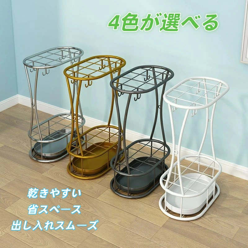 傘立て アイアン 18本収納 おしゃれ 北欧 アンティーク フック トレー 受け皿 スリム 玄関 ブラック ホワイト ブラウン 折りたたみ傘 丈夫 耐重 家庭用 業務用 オフィス 来客用 店舗 ショップ 組み立て レインラック 傘掛け 傘スタンド 傘ハン