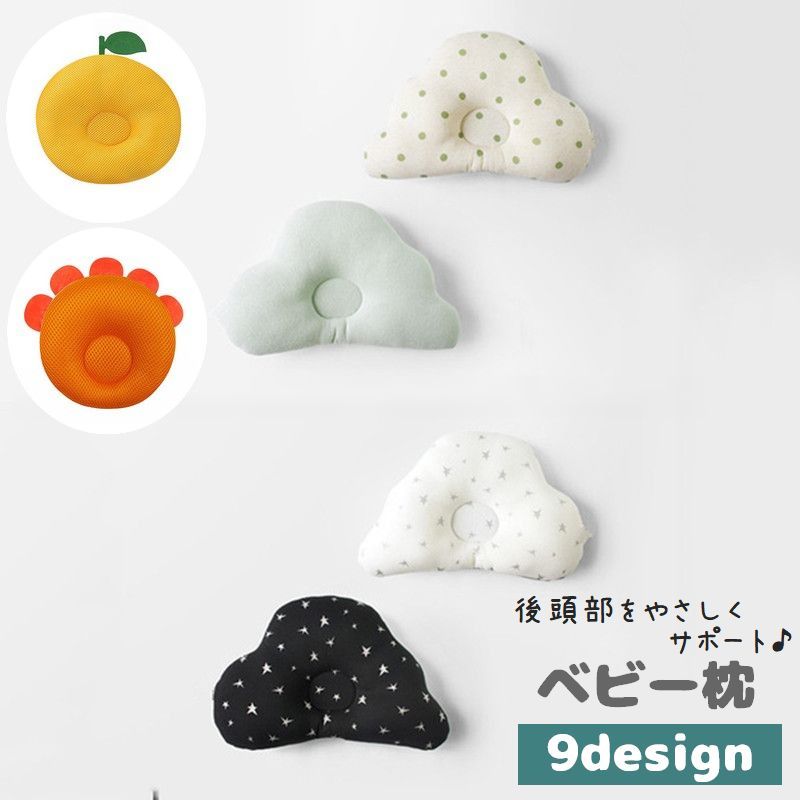 送料無料 ベビー枕 赤ちゃん 新生児 まくら ベビーピロー ドーナツ型 メッシュ 通気性 星 ドット 雲型 オレンジ クマ かわいい おしゃれ スター フルーツ ライオン グリーン ホワイト 緑 白