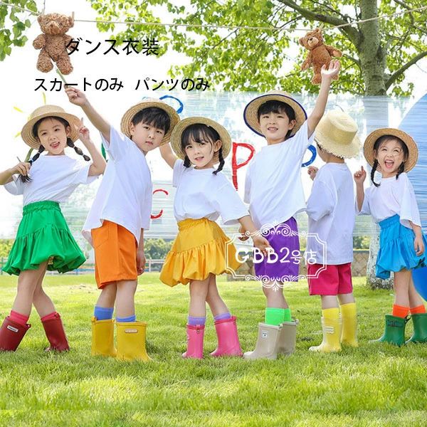 ダンス衣装 キッズ 舞台 団体服 演出服 女の子 スカート 男の子 ショーツ 普段着 応援団 大合唱、スピーチ クラス活動 ダンスウェア ヒップホップ チアリーディング ボトムス バラ パープル オレンジ イエロー グリーン ブルー 100-180