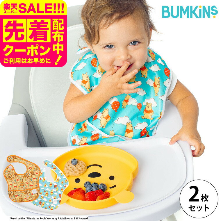 バンキンス BUMKiNS スーパービブ2パック Winnie The Pooh(balloons) / ディズニー プーさん お食事エプロン 離乳食 洗濯機可能 防水 簡単装着 ベビー用品 251106