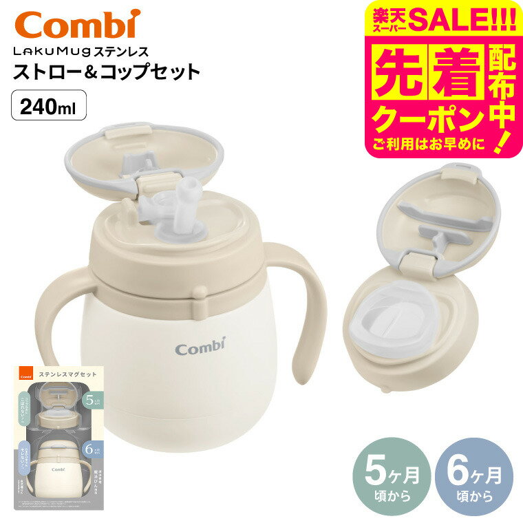 Combi コンビ ラクマグステンレス ストロー&コップセット R / 魔法瓶 保冷専用 贈り物 赤ちゃん ベビー 離乳食 食器 ベビー食器 お食い初め プレゼント 練習 育児 食洗器対応 誕生日 ベビー用品 2508mg