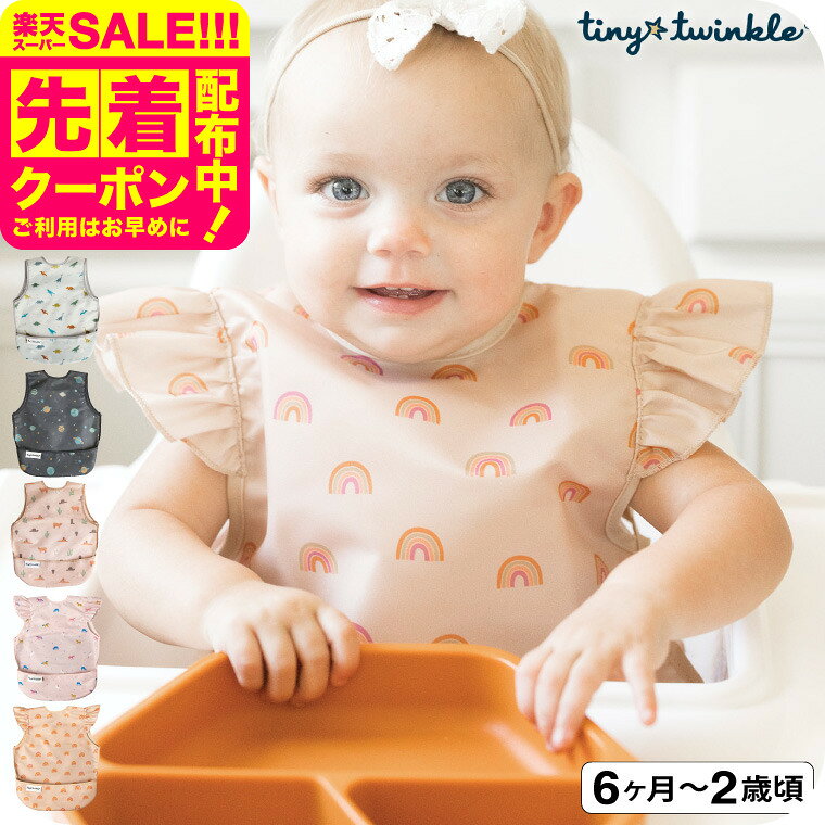 タイニートゥインクル エプロンビブ ラッフル TINYTWINKLE / ダイナソー カウボーイ スペース ユニコーン(ラッフル) レインボー(ラッフル) 軽量 コンパクト ロングタイプ 立体ポケット お絵描き サイズ調節 防水加工 洗濯機OK かわいい おしゃれ ベビー用品 251106