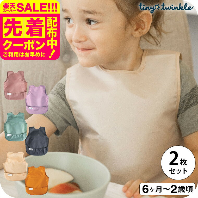 タイニートゥインクル エプロンビブ 2PK TINYTWINKLE / サンド セージ トープ 軽量 コンパクト ロングタイプ 立体ポケット お絵描き 粘土遊び サイズ調節 防水加工 洗濯機OK かわいい おしゃれ ベビー用品 保育園 入園準備 ベビー用品 251106