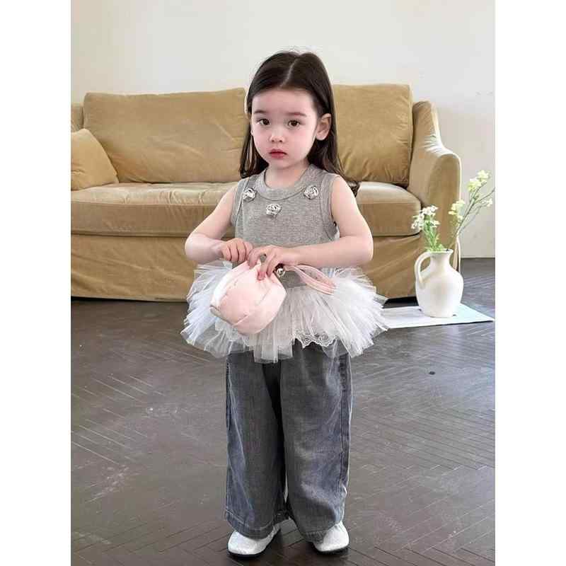 女児 トップス 春夏 かわいい 立体花柄 ノースリーブ 無袖 ベビー キッズ 夏服 デニムパンツ ジーンズ 子供服 カジュアル フラワー タンクトップ キャミソール ブラウス