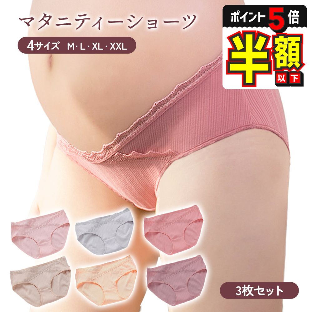 期間限定【50%OFFクーポン配布】マタニティショーツ ローライズ 3枚セット 妊婦用 下着 インナー 妊娠 産前 産後 パンツ 出産準備 コットン 通気性 伸縮性 綿 無地 柔らかい おしゃれ レディース くすみ レース