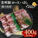 【ふるさと納税】【美明豚】焼肉用400g(ロース200g・ばら200g)【冷凍 甘味 国産豚 茨城県 水戸市 国産 銘柄豚】(EK-92)
