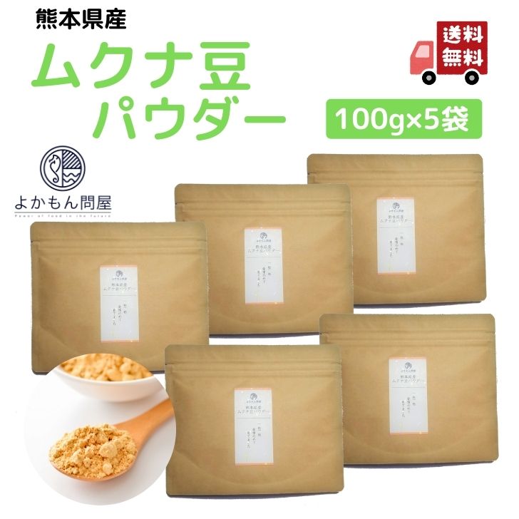 熊本産 ムクナ豆 パウダー【 お得 な 100g × 5袋 セット 】 Mucuna 八升豆 粉末 大容量 スーパーフード 無添加 国内加工 栽培時農薬不使用 自然栽培 安心安全