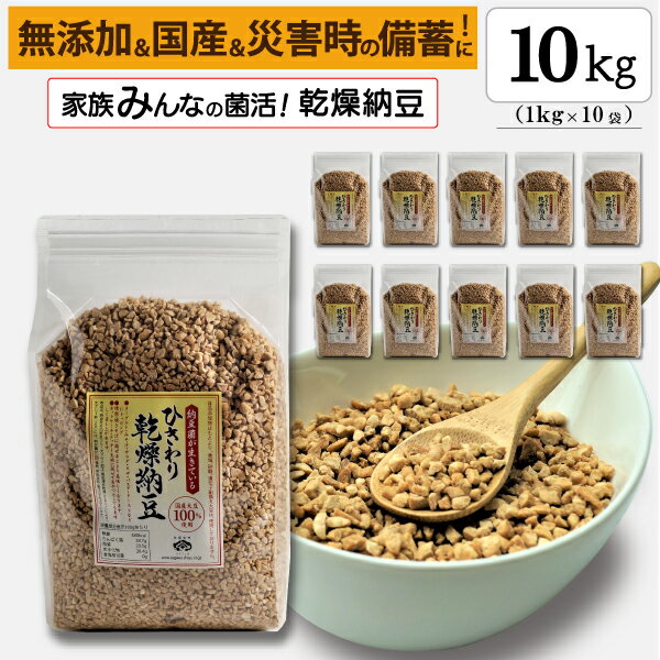 【ひきわり乾燥納豆】業務用10kg(1kg×10袋 )無添加、国産大豆、災害時の備蓄用納豆や海外旅行にも最適!