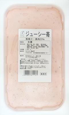 甘酸っぱい果肉の食感が格別ですいちごの果汁・果肉入りのシャーベットです。甘酸っぱい果肉の食感が格別です。【規格】1ボール2L【果汁・果肉】23%