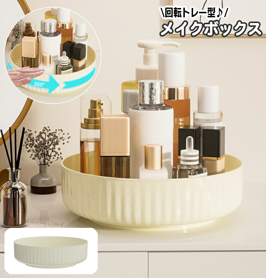 送料無料 回転式メイクボックス 360度回転 コスメボックス 収納トレイ ターントレー ケース 浅型 オープン 化粧道具 小物入れ 化粧品 化粧水 ヘアケア用品 おしゃれ かわいい 整理 取り出しやすい