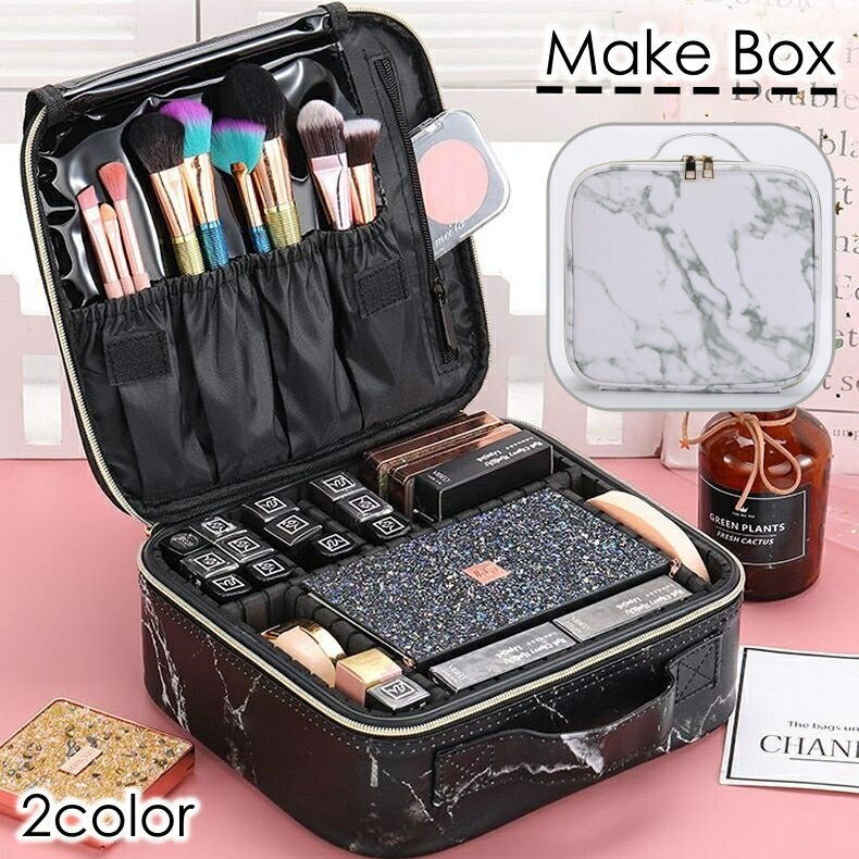 送料無料 メイクボックス バニティバッグ 収納ケース 収納バッグ 持ち手付き 大容量 大理石柄 仕切り ポケット 持ち運び 化粧品 コスメ メイク道具 メイクグッズ スクエア おしゃれ