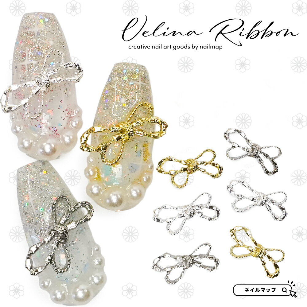 ★BLACKFRIDAY×猫の日クーポン★ネイル 【 ネイルパーツ Velina Ribbon-ヴェリーナリボン- 全3色 】 リボン りぼん パーツ シルバー ゴールド 金 メタルパーツ 可愛い かわいい 蝶結び ジェルネイル レジン ネイルアート セルフネイル 大きめ デコ ハンドメイド