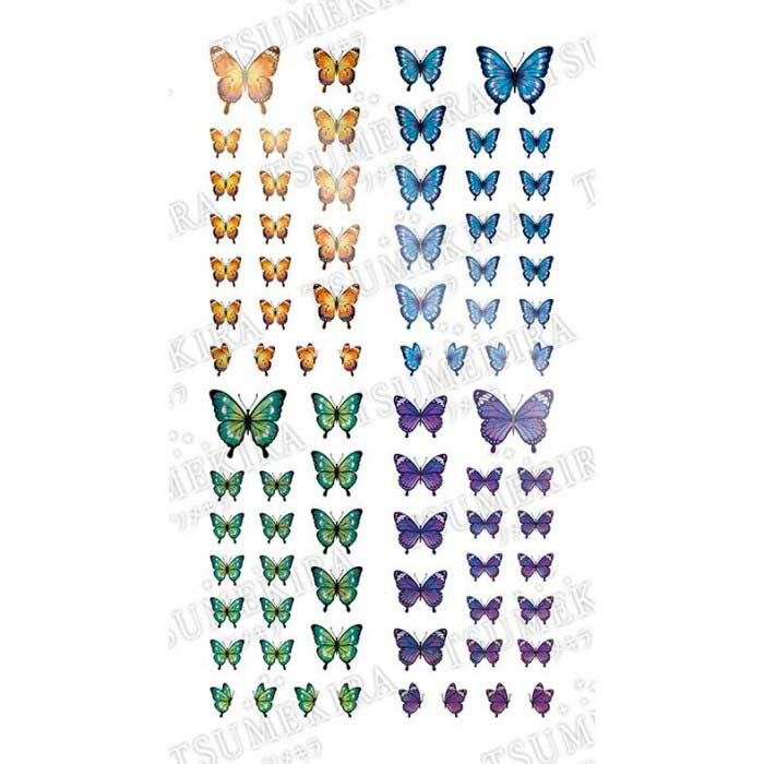 ご注文前にご確認ください※ 商品パッケージや仕様につきまして、予告なく変更されることがございます。商品説明★ 手書きでは難しい繊細なラインの蝶柄をデザインしました。美しい光沢のメタリックグラデーションで小さいながらも存在感があります。サイズも3バリエーションあり、大人っぽいデザインから可愛いデザインまで幅広いシーンで使えます♪※ネイリストはデザインプロデュースを行っておりますが、販売は行っておりません。ネイリストへの購入のお問い合わせはご遠慮ください。※このシールの素材はしなやかフィットシートを使用しています。ご利用前に必ず貼り方ページをご覧ください。スペック* 材質:ポリエチレンフィルム
