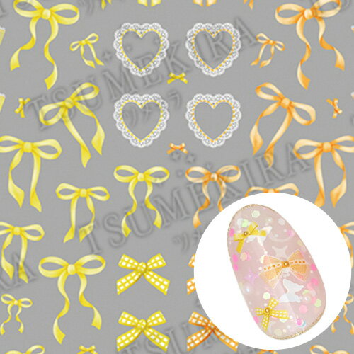 アート ネイルシール ツメキラ TSUMEKIRA Sweet Ribbon Mix イエロー&オレンジ(Supervised by OLiLicO ゆりし) ゆうパケット tumekira つめきら 爪キラ ねいるしーる リボン ハート