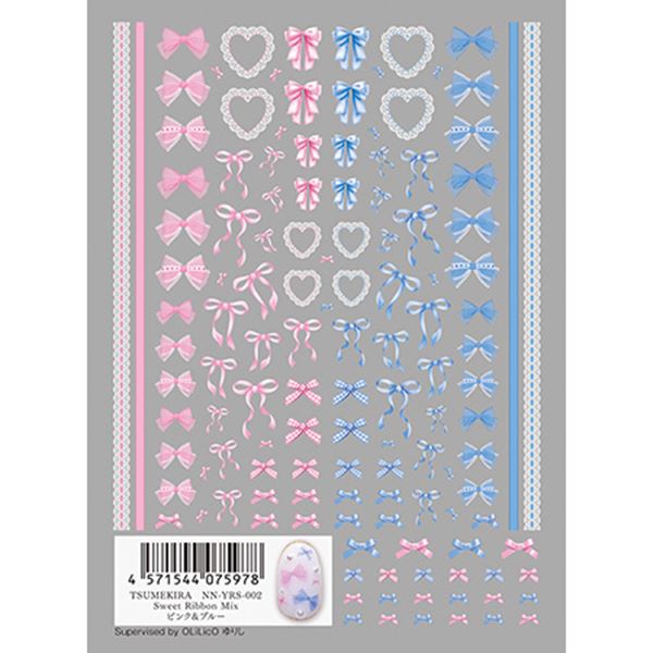 ツメキラ TSUMEKIRA NN-YRS-002 Sweet Ribbon Mix ピンク&ブルー Supervised by OLiLicO ゆりし リボン