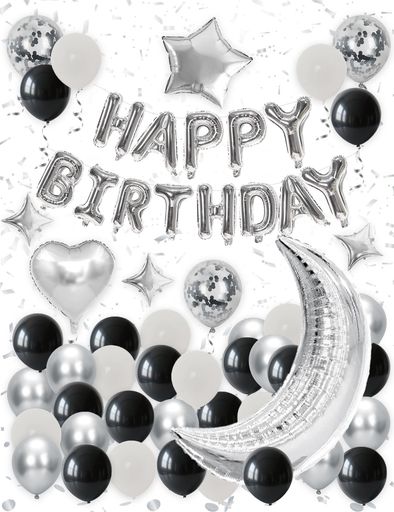 GRESATEK誕生日風船バルーンシルバー飾り付けバースデー飾りhappybirthdayガーランド紙吹雪風船パーティー記念日お祝い子供男女両面テープリボン付き
