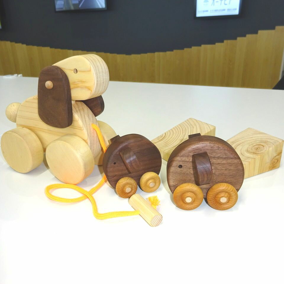 商品説明サイズ・おさんぽワンちゃん 体長 170mm、高さ 160mm、幅 85mm ひもの長さ 400mm 重量 380g・くるりんぱ親子 【親】体長 80mm、高さ 75mm、全幅 80mm 重量 (台木込み)162g 【子】体長 70mm、高さ 65mm、全幅 70mm 重量 (台木込み)152g 材質 ・おさんぽワンちゃん 胴体、車輪(ヒノキ) 耳(ウォルナット(クルミ)) 塗装:クルミオイル・くるりんぱ親子(ブラウン) 胴体(ウォルナット(クルミ)) 車輪(ビーチ(ブナ)) 台木(ヒノキ) 塗装:クルミオイル 概要 手触りが優しい幼児向けの木製おもちゃ。特に歩き始めのお子様におすすめの玩具です。 人気のおさんぽワンちゃんとくるりんぱ親子(ブラウン)のセットです。※画像はイメージです。 ※手づくりのため、表示寸法及び重量には若干の誤差が生じます。※赤ちゃんが口に入れても安心なクルミオイルで塗装しています。 ※ご贈答用など包装の対応は出来かねますのでご了承ください。 ■地場産品類型番号 セット 前各号のいずれかに該当する返礼品等同士を組み合わせた返礼品であること。※地場産品に地場産品以外を附帯させるものについては本類型ではなく6号として整理すること。 ■地場産品に該当する理由 [工程] 1.木の切断 2.カンナ掛け 3.電動糸鋸でカット 4.カットパーツをサンダーで研磨 5.蜜ろう塗布 6.パーツの組み立て 7.梱包 【3号】 区域外での工程はなし 木工製品の製造工程のうち、仕入れの一部を除き完成までのすべての工程を職人の手で一つ一つ行うことで、本工程による付加価値は返礼品の付加価値のうち約80%を占めているため。 発送期日通年事業者楽木工房(高知県幡多郡黒潮町) ・ふるさと納税よくある質問はこちら ・寄附申込みのキャンセル、返礼品の変更・返品はできません。あらかじめご了承ください。【ふるさと納税】[0969]おさんぽワンちゃんとくるりんぱ親子(ブラウン)のセット 「ふるさと納税」寄付金は、下記の事業を推進する資金として活用してまいります。 寄付を希望される皆さまの想いでお選びください。 (1) 元気な黒潮町をつくる(分野を限定しない町政全般に対する寄附) (2) いのちとくらしをまもる防災対策 (3) 子ども子育ての支援及び教育の充実 (4) スポーツ及び芸術文化の推進によるまちづくり (5) 産業振興の発展 (6) 自然環境の保全 (7) 健康や医療等の福祉の充実 (8) 中山間地域でくらしつづけられるまちづくり (9) 上林暁作品の映画製作 特段のご希望がなければ、町政全般に活用いたします。 入金確認後、注文内容確認画面の【注文者情報】に記載のご住所に1週間〜2週間程度で送付いたします。 なお、お礼の品とは別に送付いたします。