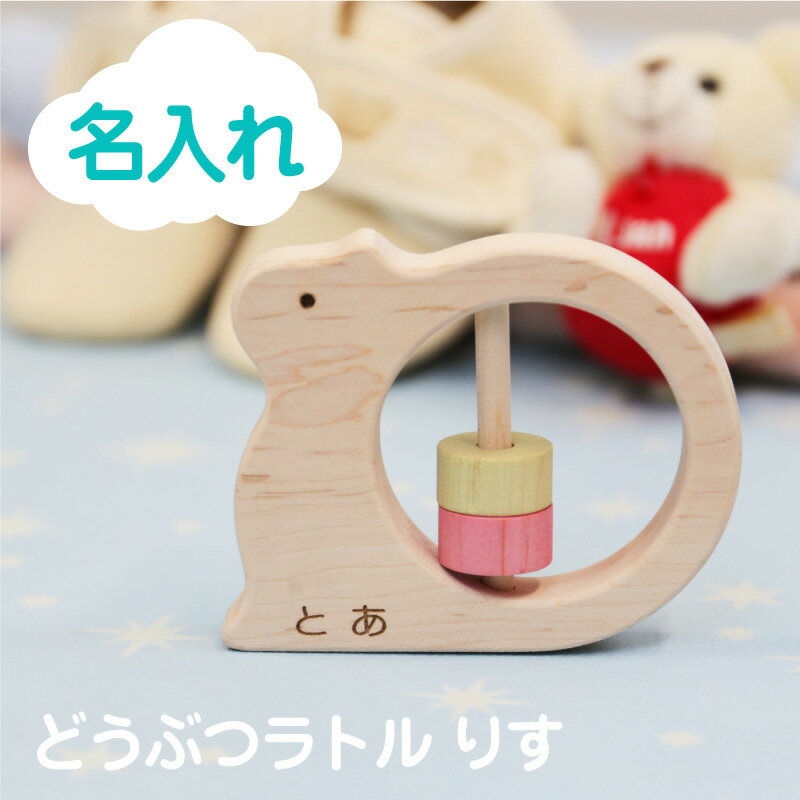 0歳 誕生日プレゼント ラトル 歯がため 赤ちゃん おもちゃ 名入れ【 どうぶつラトル リス 】 プレゼント ギフト 安全 木育 かわいい 木製 日本製 国産 握りやすい 木のおもちゃ ハーフバースデー 5ヶ月 6ヶ月 7ヶ月 8ヶ月 誕生日 出産祝い 送料無料 翌々営業日出荷