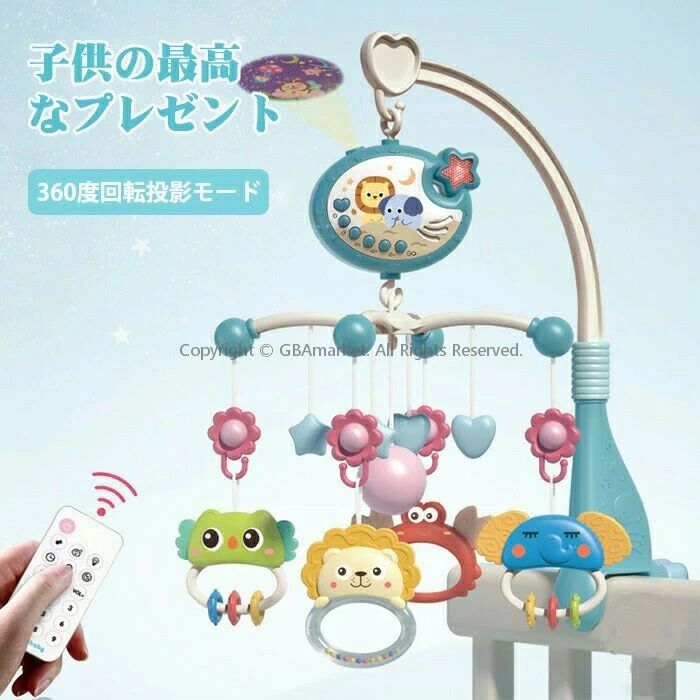 送料無料 ベッド ベビーベッド おもちゃ ベビーベッド用 オルゴール ベビーおもちゃ 赤ちゃん 360°回転 音楽 投影 リモコン付 0歳 1歳 子供 新生児 おもちゃ 知育玩具 出産祝い お誕生日 プレゼント ギフト 男の子 女の子 贈り物