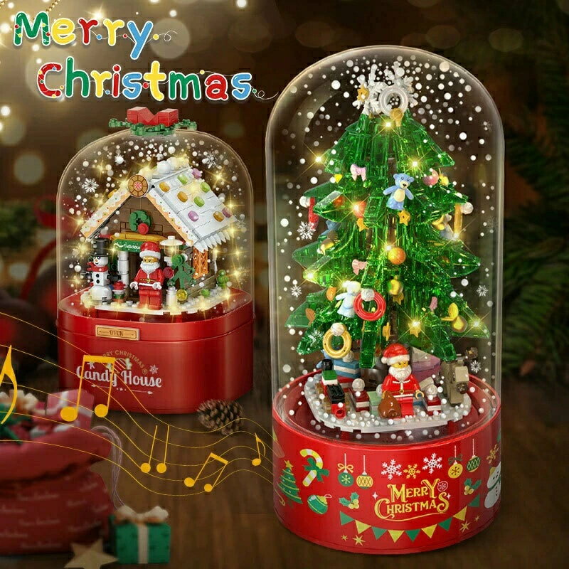 クリスマスツリー お菓子の家 オルゴール スノードーム ブロック 629pcs /298pcs 知育玩具 インテリア 飾り おもちゃ 雪だるま 組み立て ダストカバー付き 室内 大人 子供 小学生 男の子 女の子 クリスマスプレゼント