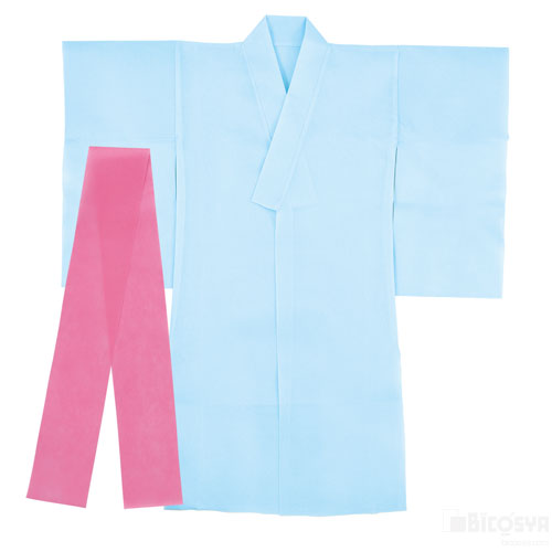 折りたたんで収納できるバッグ付き付! サイズ:本体:800×850mm、帯:1200×100mm セット内容:本体×1、帯×1 重量:100g 材質:不織布 包装形態:PP 包装サイズ32x40mm 衣装ベース着物(おくみ付き) 水色(運動会 衣装ベース 運動会 仮装 文化祭 演劇 学芸会 手作り お遊戯会)