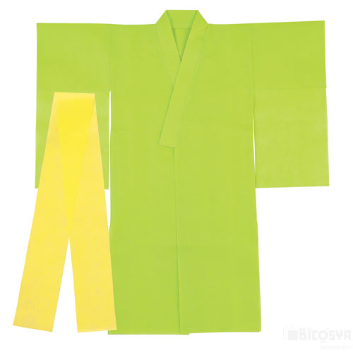 折りたたんで収納できるバッグ付き付! サイズ:本体:800×850mm、帯:1200×100mm セット内容:本体×1、帯×1 重量:100g 材質:不織布 包装形態:PP 包装サイズ32x40mm 衣装ベース着物(おくみ付き) 黄緑(運動会 衣装ベース 運動会 仮装 文化祭 演劇 学芸会 手作り お遊戯会)