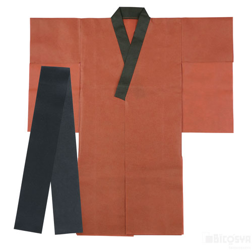 折りたたんで収納できるバッグ付き付! サイズ:本体:800×850mm、帯:1200×100mm セット内容:本体×1、帯×1 重量:100g 材質:不織布 包装形態:PP 包装サイズ32x40mm 衣装ベース着物(おくみ付き) 茶(運動会 衣装ベース 運動会 仮装 文化祭 演劇 学芸会 手作り お遊戯会)