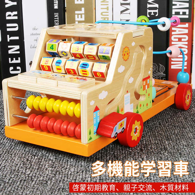 お買い物マラソン【P5倍】多機能子供用ビーズ 多機能学習車 木の ルーピングコースター ビーズコースター 数字合わせ 形状マッチング カラフルなアバカス 形合わせ 1歳 知育玩具 お祝い 開院