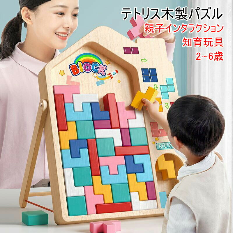 新作【親子インタラクション】木製ブロックパズル テトリス パズル ブロック 知育玩具 知育 木 木製 知育パズル 教育玩具 2歳~6歳 子供 おもちゃ 玩具 モンテッソーリ 子供 室内 木のおもちゃ 男の子 女の子 立体パズル ゲーム 脳トレ カラフル 組み合わせ 誕生日 プレゼント