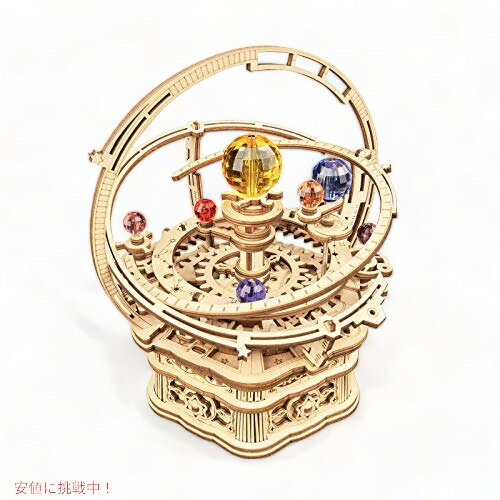ROKR3D 木製パズル Orrery オルゴール-機械式DIYソーラーシステムキット