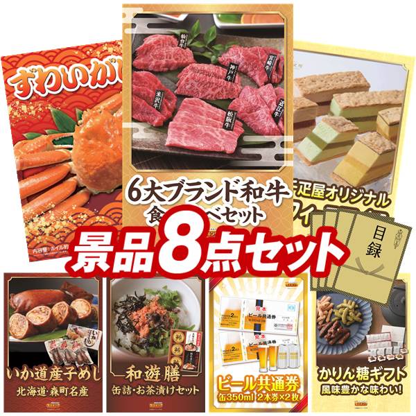 ランキング受賞★ ゴルフコンペ景品 8点セット 【6大ブランド和牛食べ比べセット、姿ずわいがに 他】 送料無料!特大パネル・目録・特典付き!