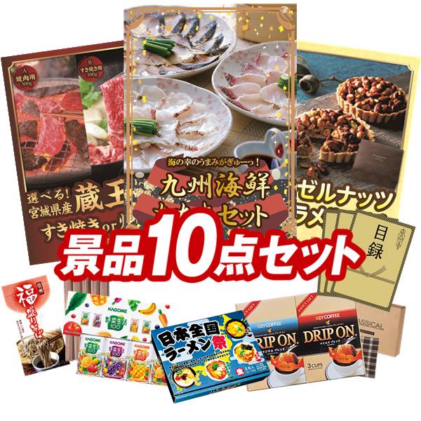 ランキング受賞★ ゴルフコンペ景品 10点セット 【九州海鮮たたきセット、選べる!宮城県産蔵王牛(すき焼きor焼肉) 他】 送料無料!特大パネル・目録・特典付き!