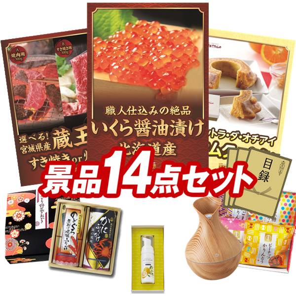 ランキング受賞★ ゴルフコンペ景品 14点セット 【北海道いくら醤油漬け、選べる!宮城県産蔵王牛(すき焼きor焼肉) 他】 送料無料!特大パネル・目録・特典付き!