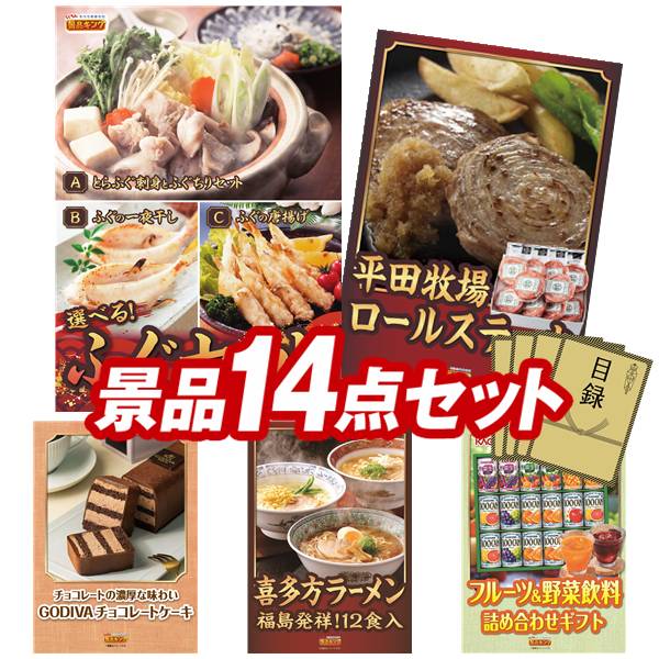 ランキング受賞★ ゴルフコンペ景品 14点セット 【選べるふぐセット、平田牧場日本の米育ちロールステーキ ギフト 他】 送料無料!特大パネル・目録・特典付き!