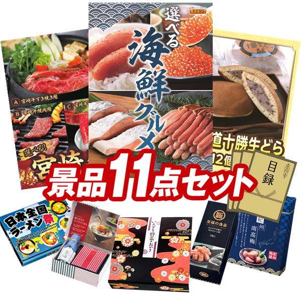 ランキング受賞★ ゴルフコンペ景品 11点セット 【選べる海鮮グルメ、選べる一品 宮崎牛 他】 送料無料!特大パネル・目録・特典付き!