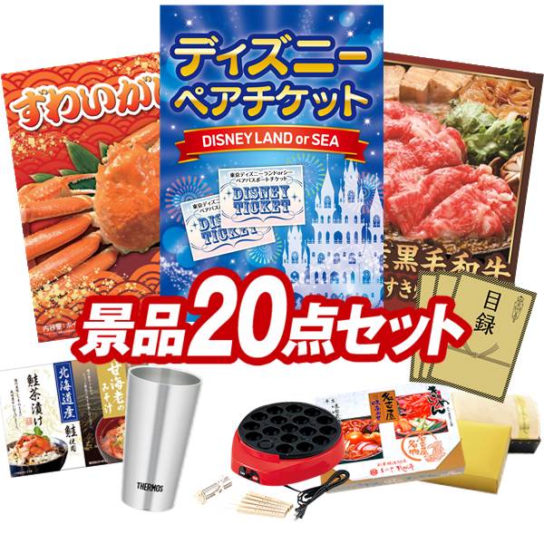 景品セット情報 販売価格 67,800円(送料・パネル代 全て込み) セット内容 景品20点/A3景品パネル3点/目録風お申し込み用紙/お持ち帰り用バッグ 景品 お届け形態 数量 ディズニーペアチケットパネル&目録1姿ずわいがにパネル&目録1国産黒毛和牛前バラすき焼き用300gパネル&目録1たこ焼き器現物1サーモス真空断熱タンブラー300ml現物1名古屋味あわせ現物1海の幸詰合せ(鮭茶漬け&甘海老のみそ汁)現物1プレミアムバスタオル現物1WEDGWOOD紅茶セット(ティーバッグ9P)現物1めぐりズム 蒸気でホットアイマスク現物1野菜生活4本セット現物1緊急脱出ハンマーダッシュ現物1胡麻はちみつ現物1二層バームクーヘン現物1信州福盛そば現物1至福の逸品 卵かけご飯の醤油現物1レンジで簡単 半熟たまご現物2便利なスマホストラップ現物2 合計 20