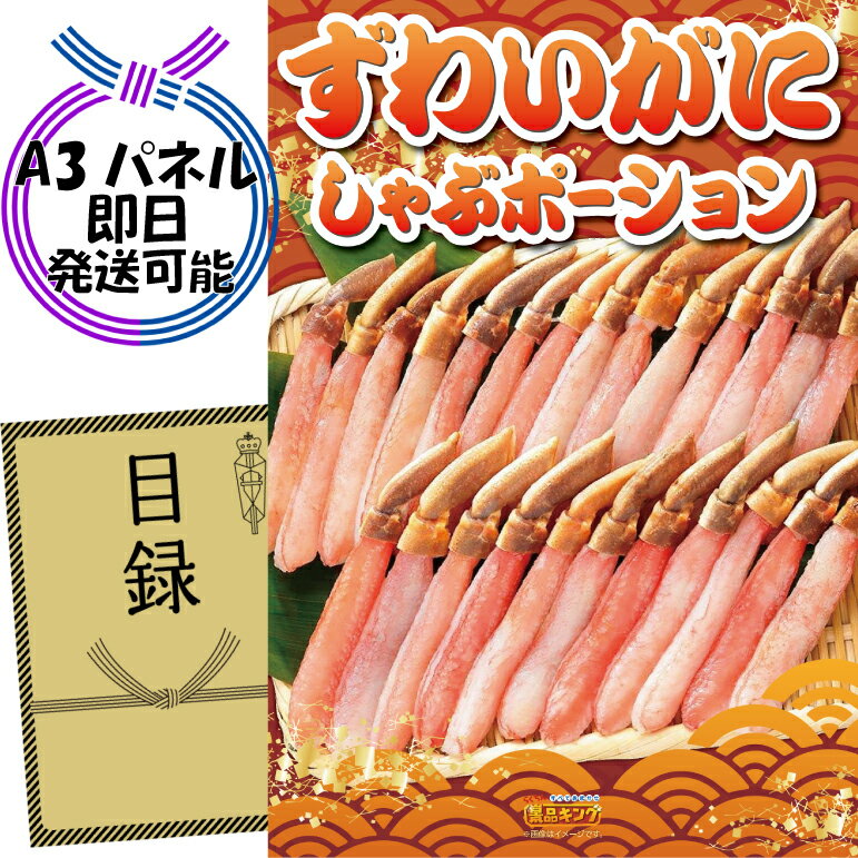 景品セット情報 販売価格 8,600円(送料・パネル代 全て込み) セット内容 景品1点/A3景品パネル1点/目録風お申し込み用紙 景品 お届け形態 数量 ずわいがにしゃぶポーションパネル&目録1 合計 1