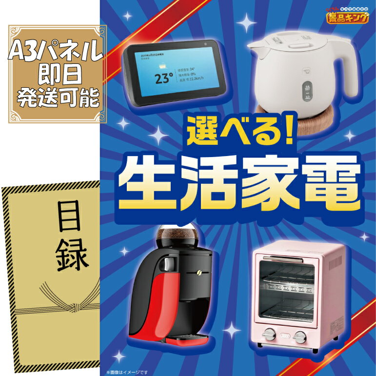 景品セット情報 販売価格 13,800円(送料・パネル代 全て込み) セット内容 景品1点/A3景品パネル1点/目録風お申し込み用紙 景品 お届け形態 数量 選べる生活家電パネル&目録1 合計 1