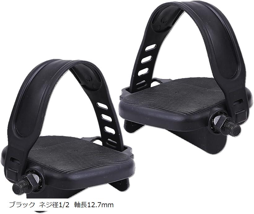 互換品 エアロバイク ペダル スピンバイク エクササイズ フィットネス 交換 取り替え 左右セット ブラック ネジ径1/2 軸長12mm (ブラック ネジ径1/2 軸長12.7mm)
