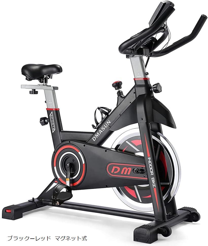 【楽天ランキング1位入賞】エアロバイク 家庭用 静音スピンバイク フィットネスバイク マグネット式 無段階調整 サドル・ハンドル調節可能 本格的トレーニング エクササイズマシン (ブラックーレッド マグネット式, DM-1)