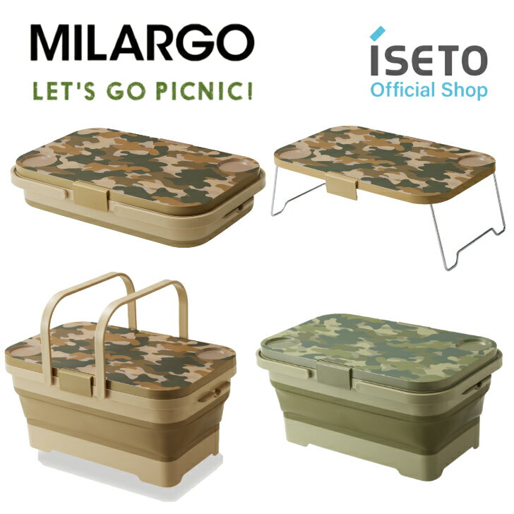 伊勢藤(ISETO) 折りたたみテーブル&バスケット ミラーゴ MILARGO 15L ピクニック アウトドア 運動会 花火大会 お花見 日本製 レジャーテーブル 洗車 防災 BBQ ISETO