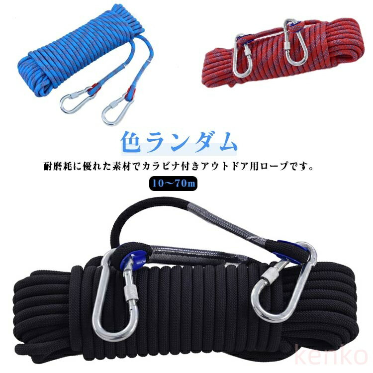 クライミングロープ カラビナ付き 50m ロープ 30m 送料無料 登山 60m 70m 送料無料 クライミング 10m アウトドア 12mm 多目的ロープ 40m 10mm 多機能ロープ キャンプ 救助ロープ 補助ロープ 耐久性 防災グッズ