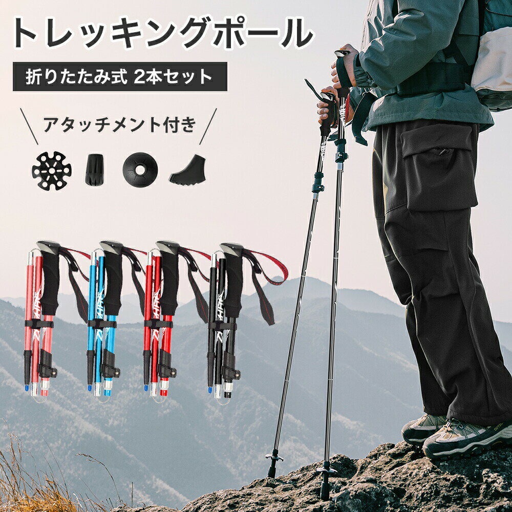 \1点5%OFF&2点10%OFF/トレッキングポール 5段 折りたたみ 軽量 伸縮 2本セット 30cm アルミ製 長さ調整 短い式 長い式 2重セーフティロック構造 高耐荷重 耐磨耗 耐久性抜群 快適 4種類キャップ コンパクト 収納袋付 ステッキ スティック 説明書付 送料無料