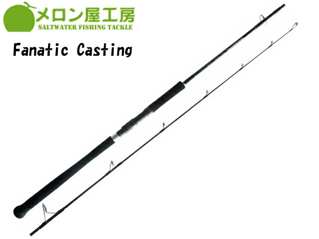 メロン屋工房 トゥルブルー Fanatic Casting FC87H ヒラマサキャスティング・マグロキャスティング・GTキャスティング 50〜80キロクラスのキハダ、クロマグロや、20キロオーバーのヒラマサをターゲットに開発。FC 84Hと同等のパワーを持ち、ロングレングスからの飛距離アップを狙ったモデルです。サーチポップを使用した誘い出しでも強く引きすぎず、適度な泡噛みとポップ音を出せる強さです、もちろん大型ダイビングペンシルの使用にも最適です。◆LENGTH:8feet7inch◆LINE:6-10Class◆LURE MAX:150g◆DRAG MAX:15Kg 5