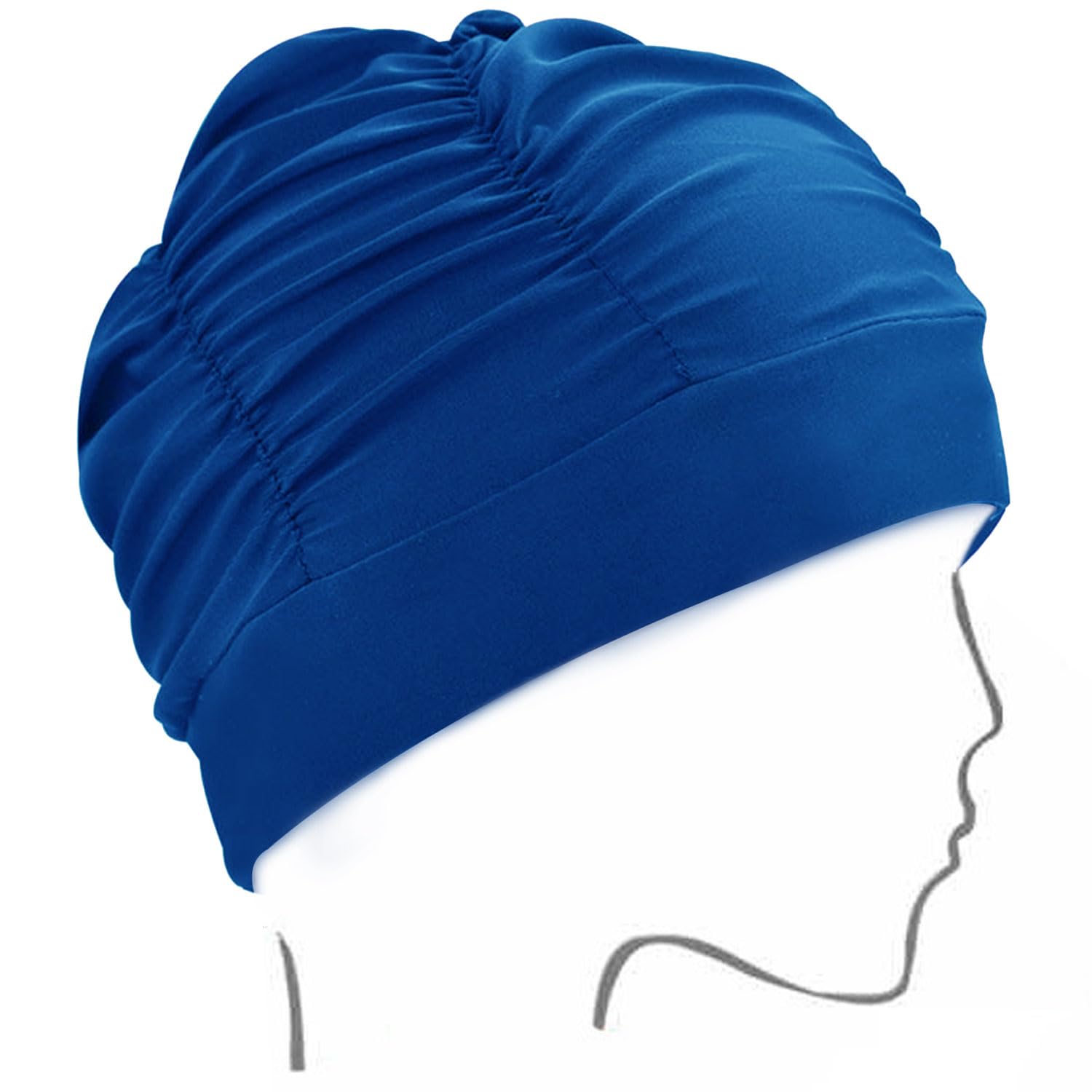 【送料無料】水泳帽子 プール帽子 吸汗性と通気性 ナチュラルで肌に優しい 高い伸縮性 ナイロン 特大サイズ 女性用スイミングキャップ 締め付けない プリーツキャップ 色:ネイビーブルー、サイズ:フリーサイズ