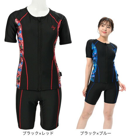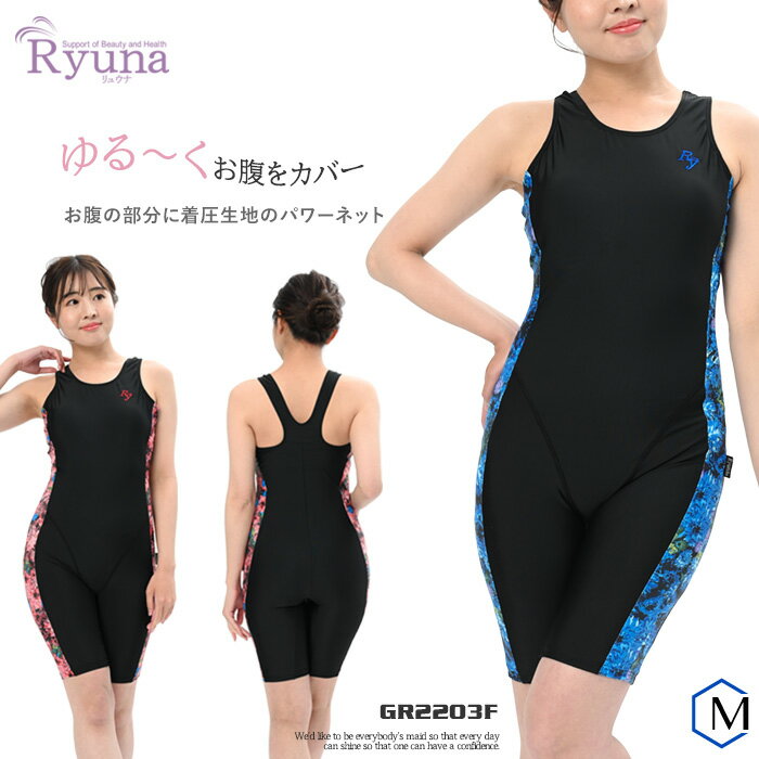 リュウナ(Ryuna)(レディース)フィットネス水着 レディース 水泳 サイド花柄 半袖 GR2214FB